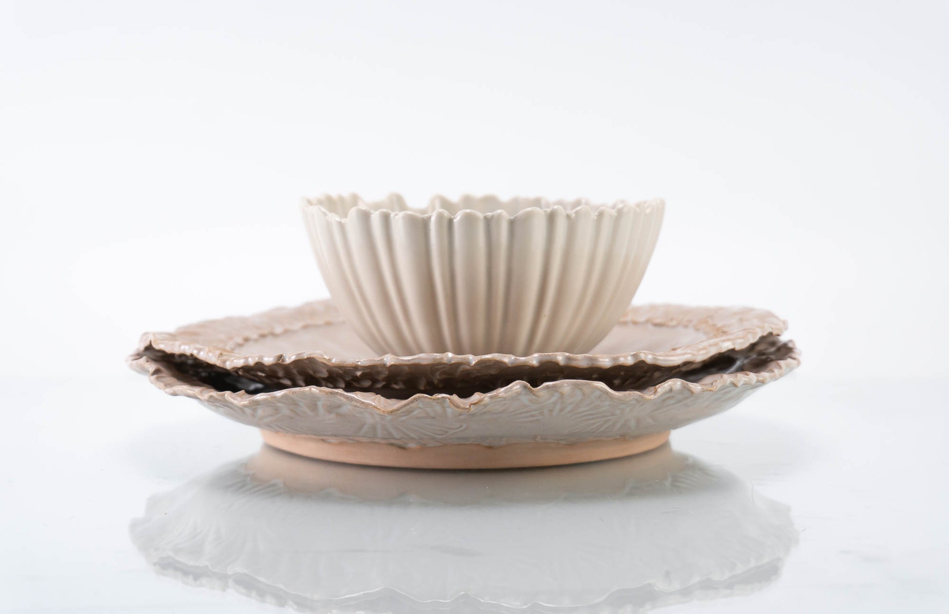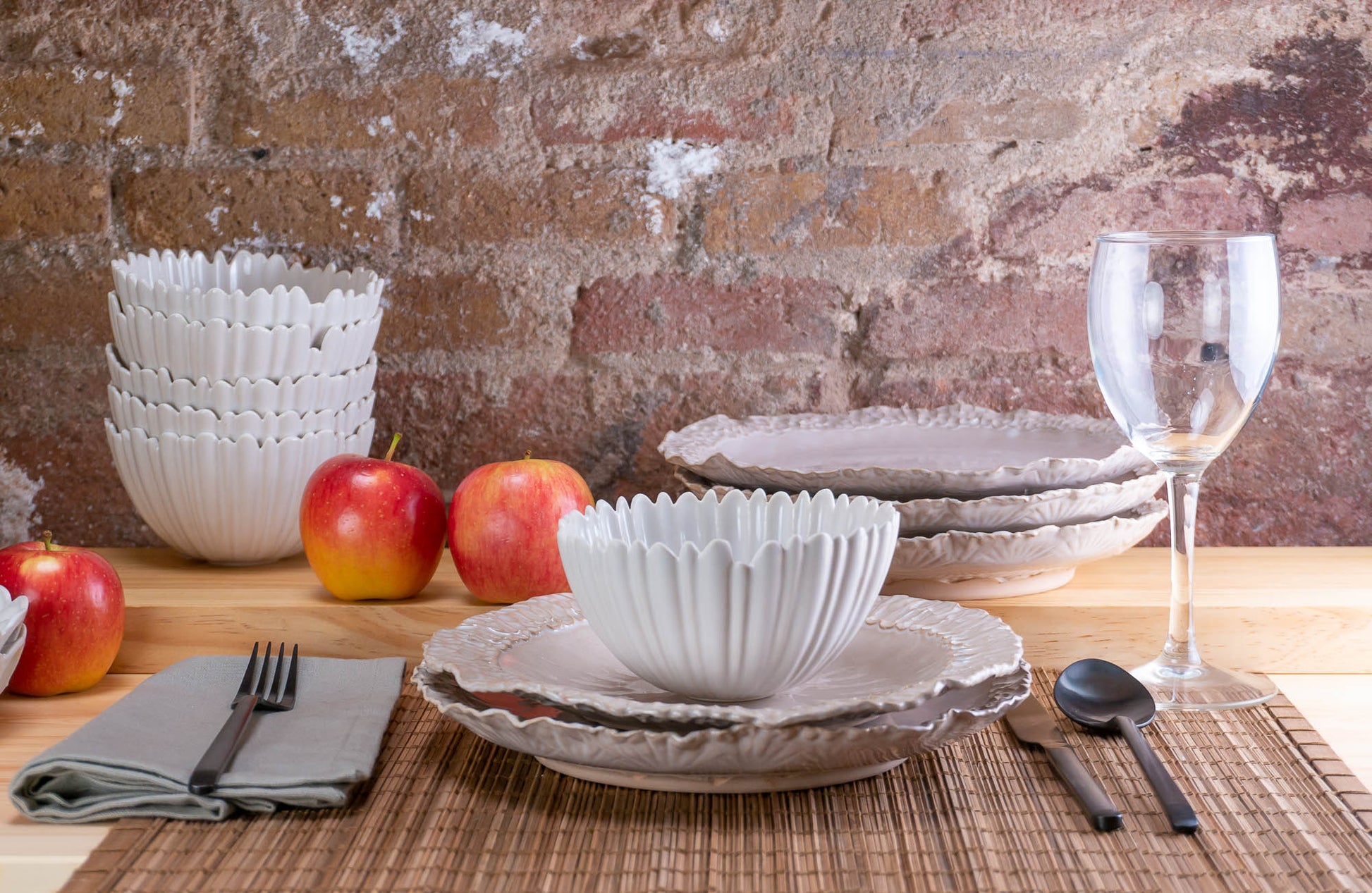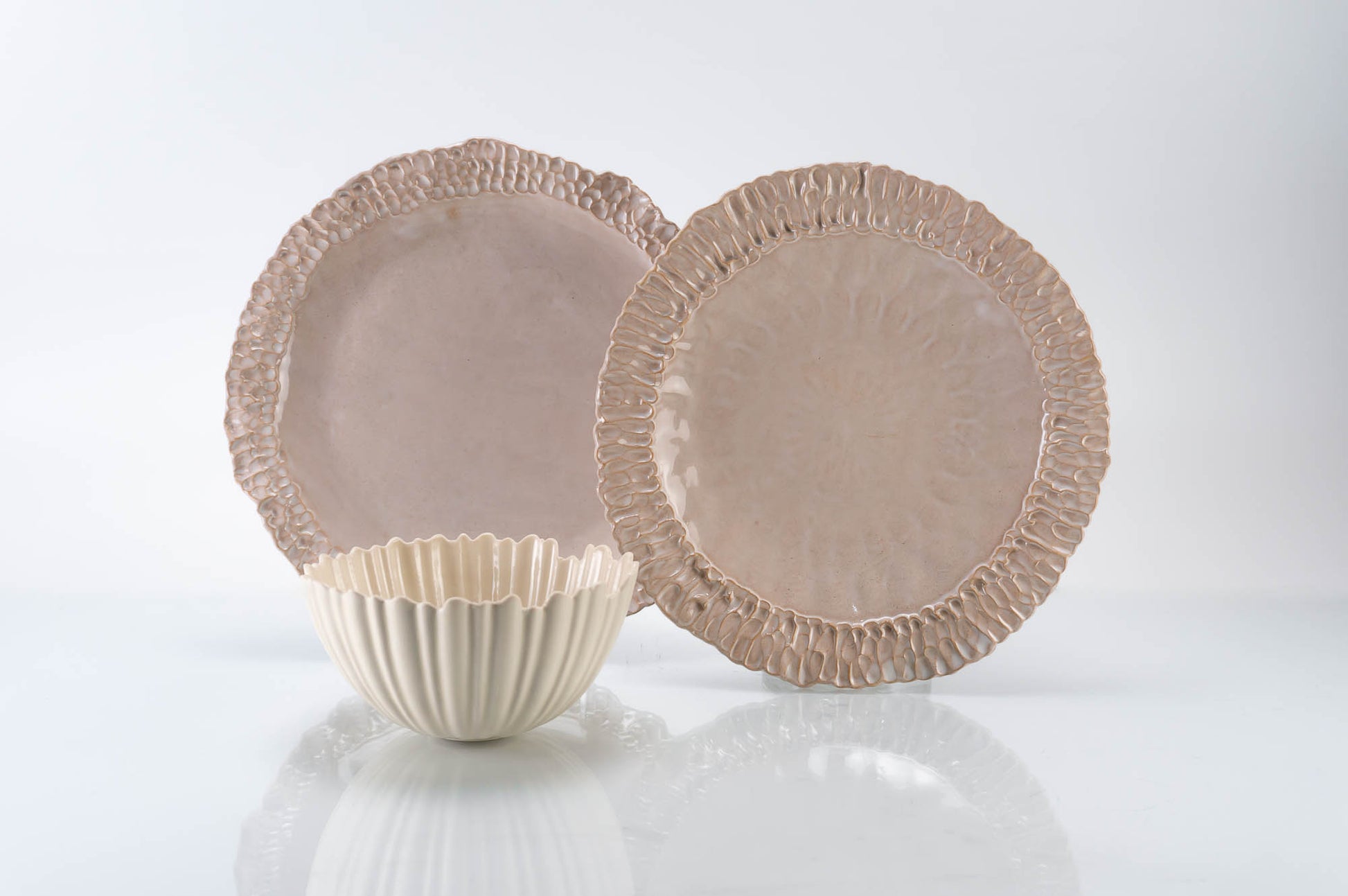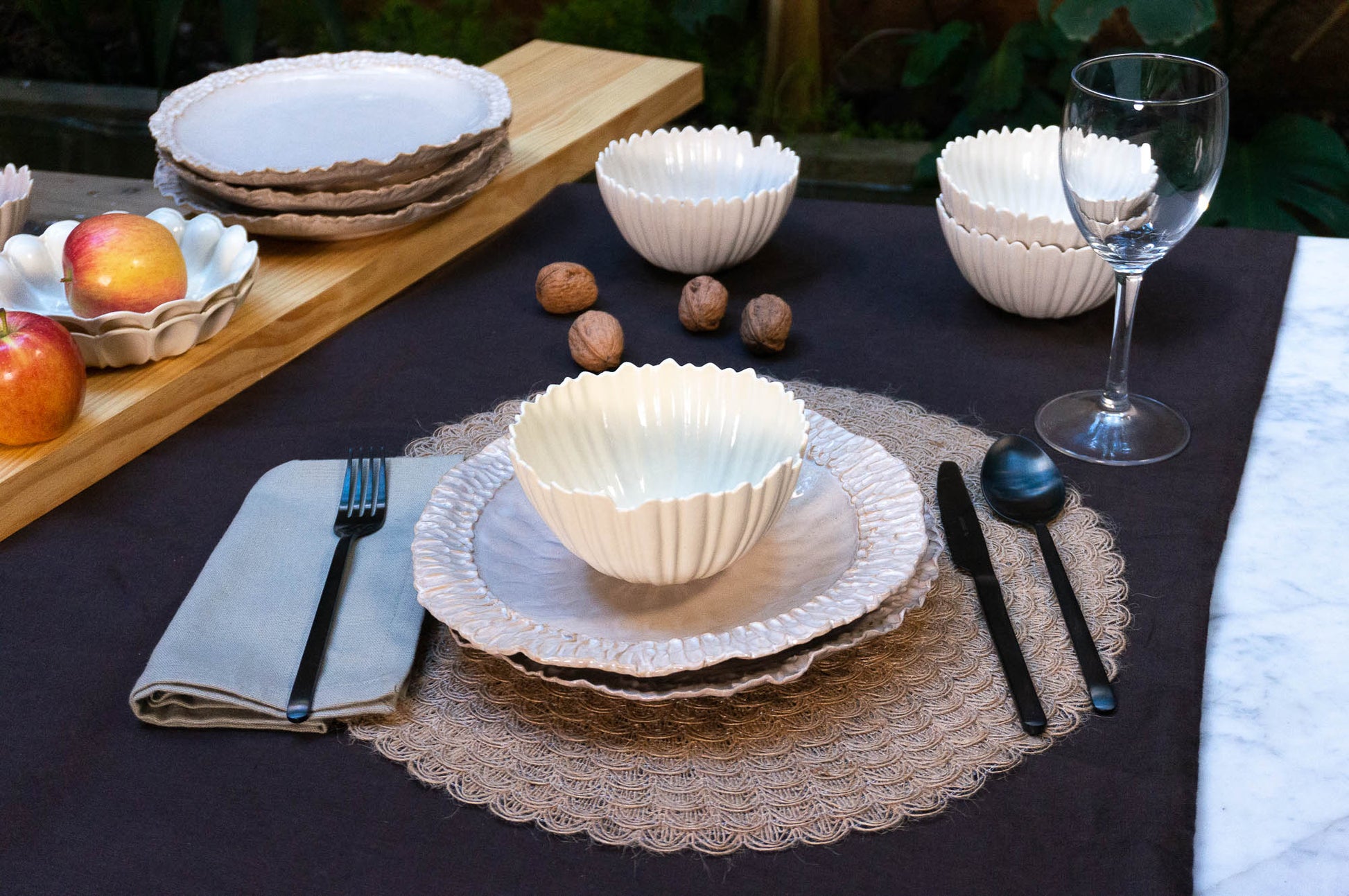 Configuració de lloc de 3 peces de vora amb textura | Bol estriat | Joc de vaixella