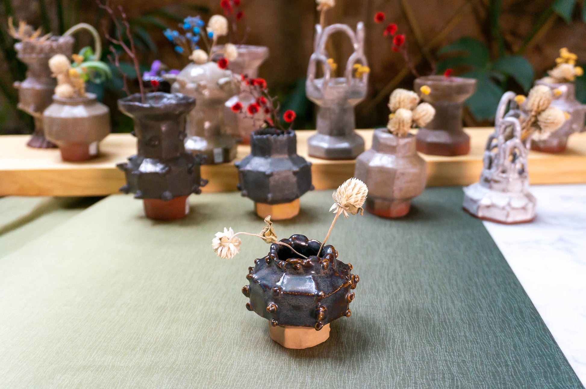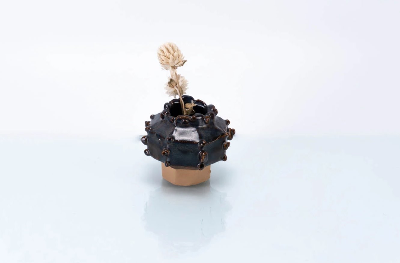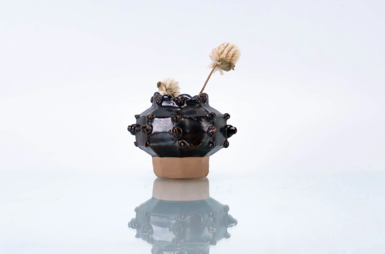 Jarrón Bump esmaltado marrón | Floreros Modernos | Florero Pequeño de Cerámica (v-212)