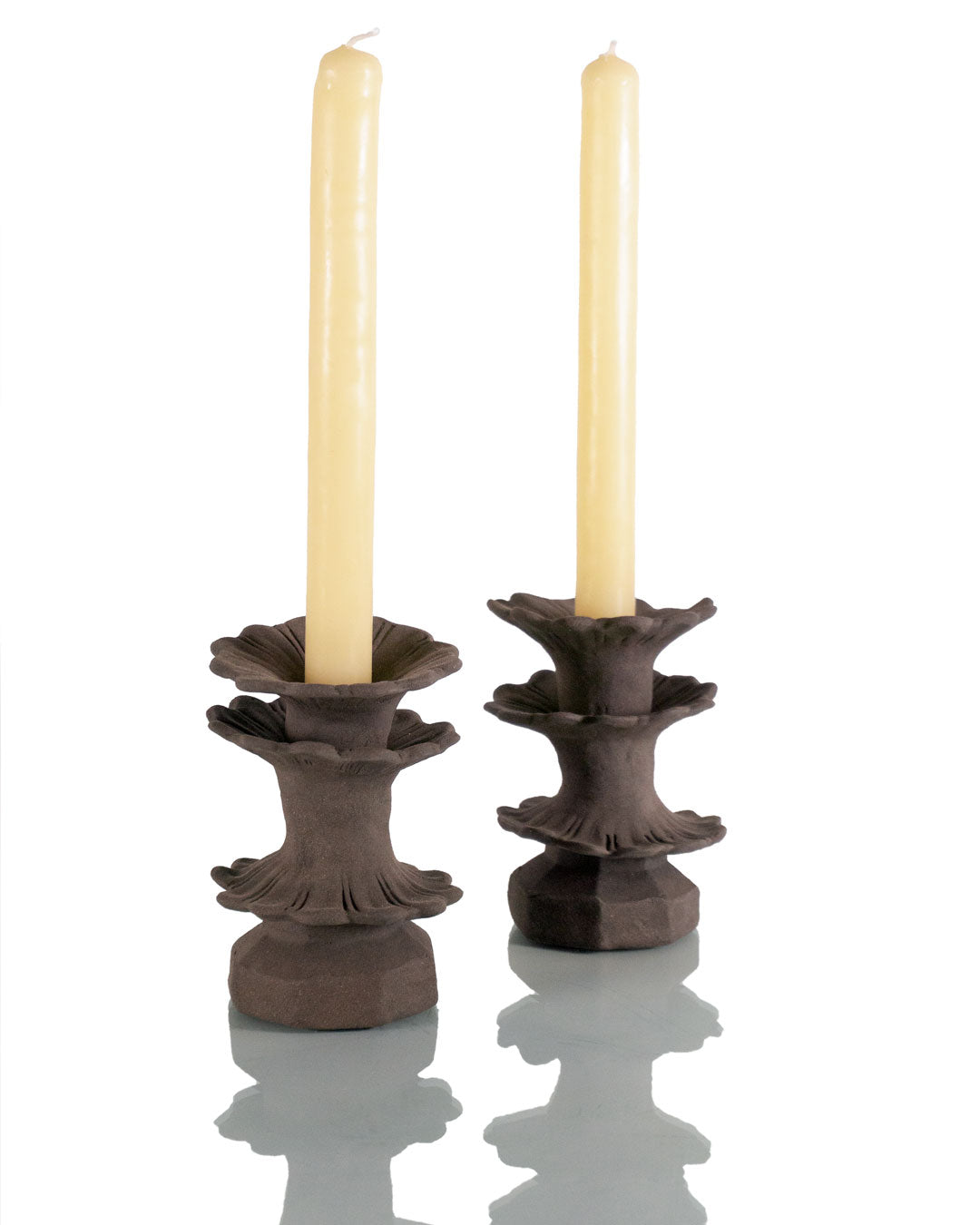Bougeoir fabriqué à la main en grès noir catalan local. Peut contenir des bougies de 20 à 25 mm de diamètre. La forme, laHauteur et lePoids varient selon la fabrication.