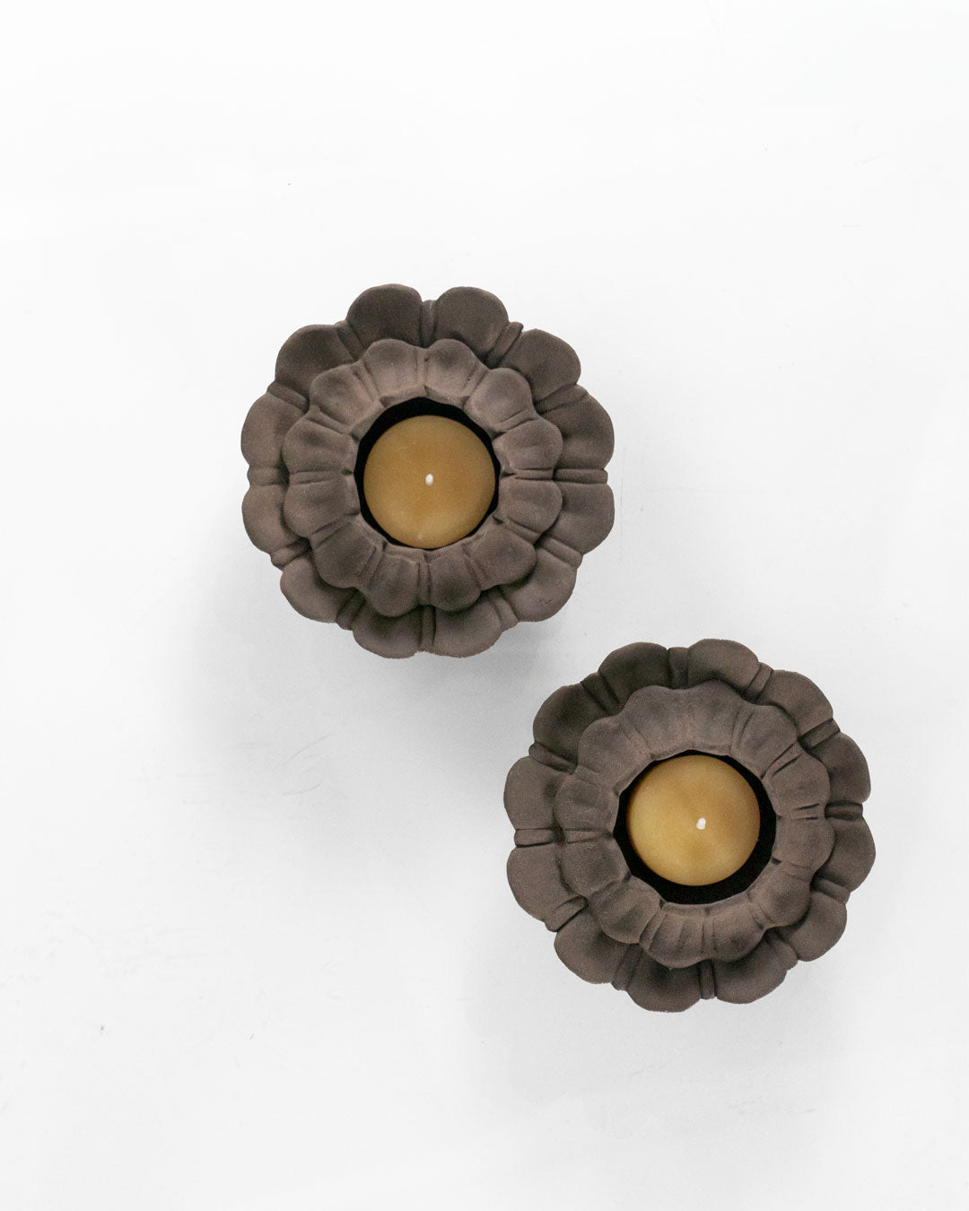L'éclairage idéal. Bougeoir fait main en grès noir catalan.