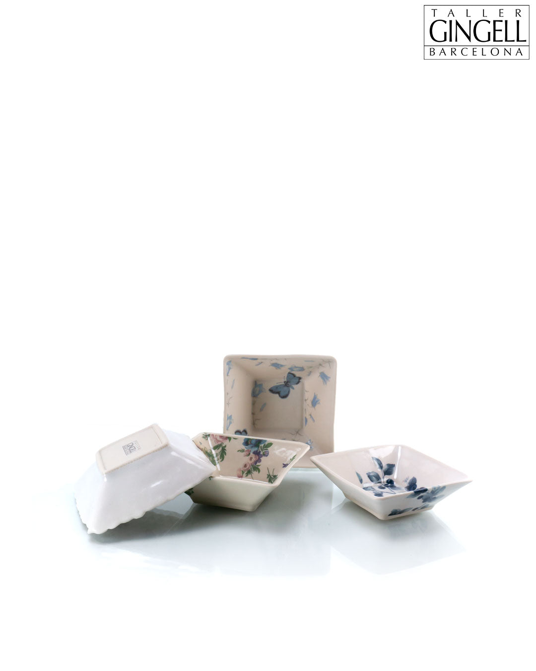 Description Ensemble de 4 petits plats carrés. Nous sélectionnons pour vous un assortiment unique de plats. Tous les plats mesurent 9,5 cm de diamètre et 2 cm deHauteur. Ils sont en grès, faits main, oxydation cône 6 (1236 °C), glaçure mélangé à la main. |