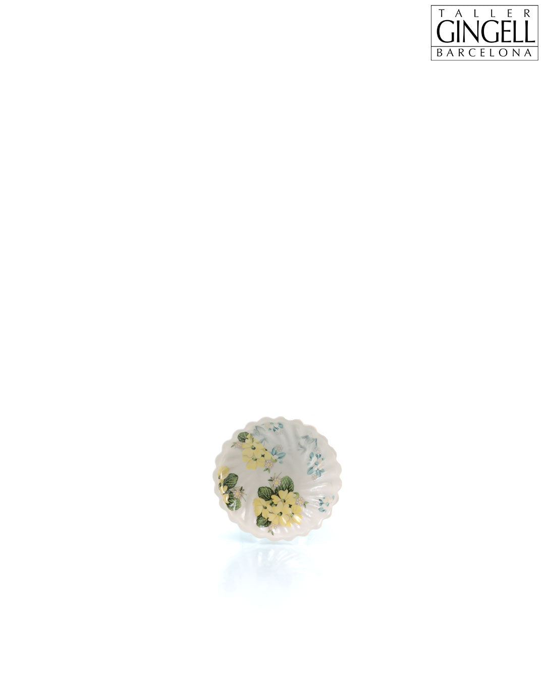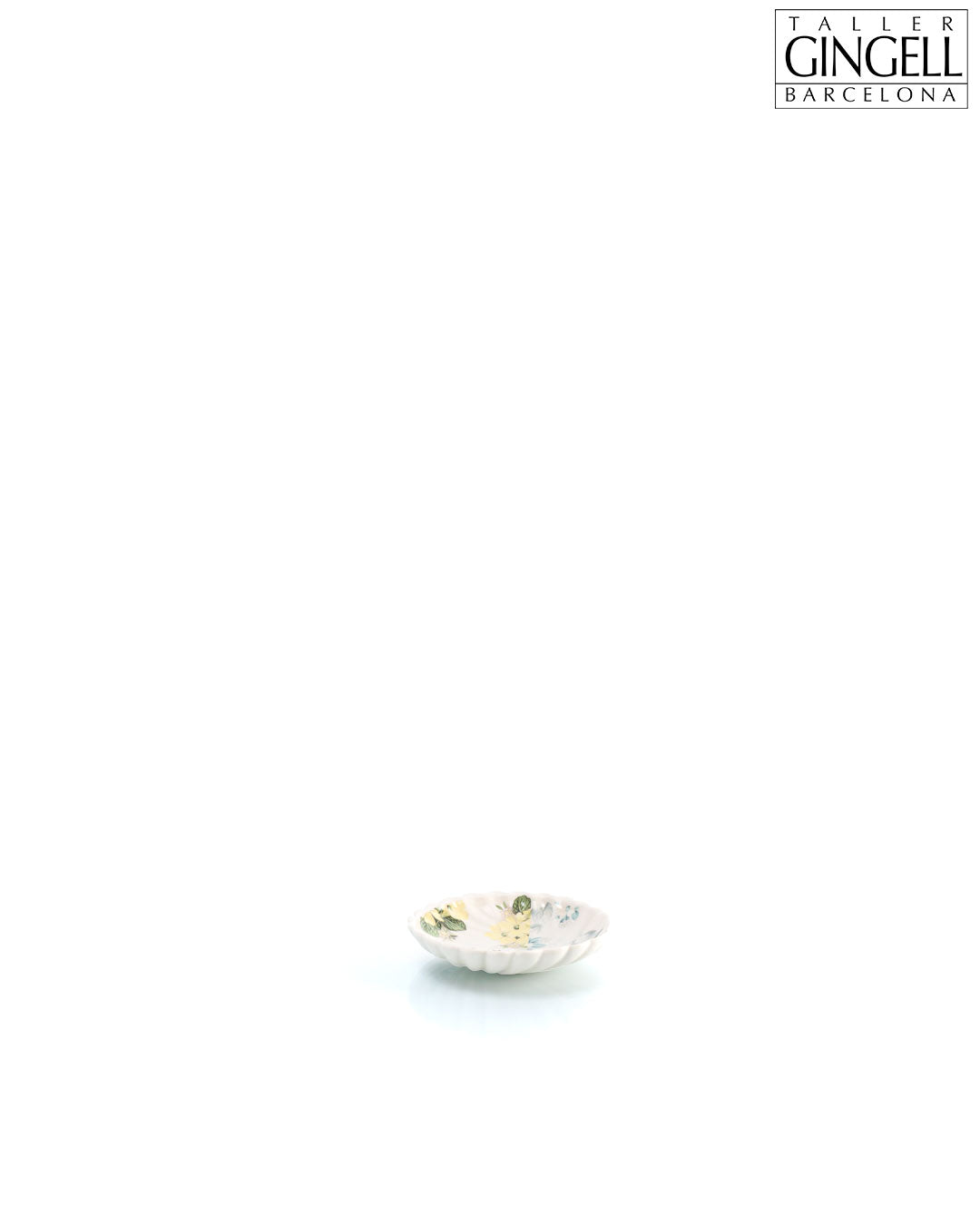 Description Petit plat rond, 9,5 cm (3 1/2") de diamètre, 2 cm (3/4") deHauteur, en grès, fait à la main, oxydation cône 6 (1236ºC), glaçure jonquille. |
