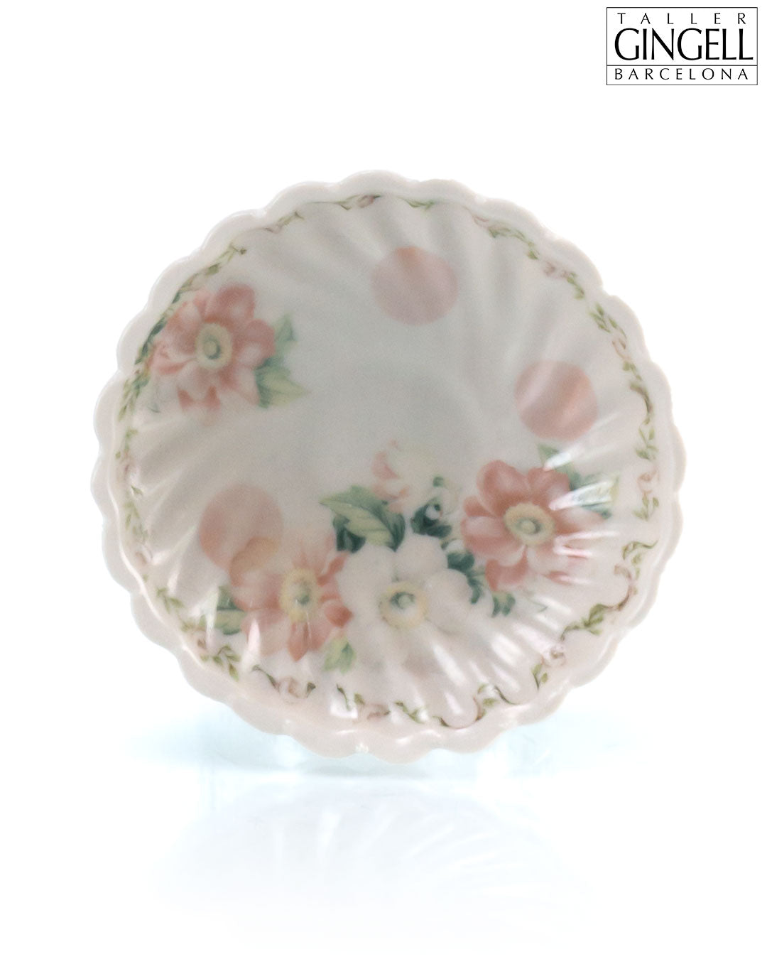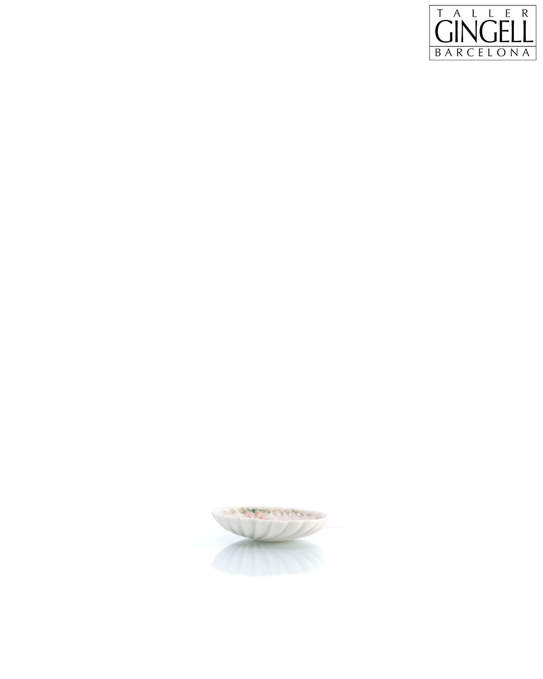 Description Petit plat rond, 9,5 cm (3 1/2") de diamètre, 2 cm (3/4") deHauteur, en grès, fait à la main, oxydation cône 6 (1236ºC), glaçure blanc. |