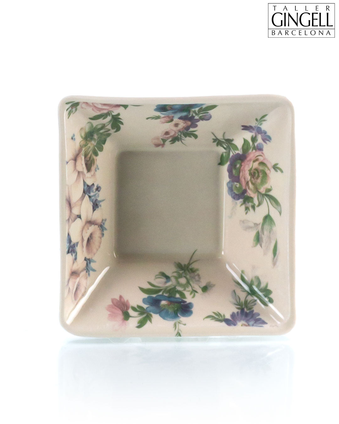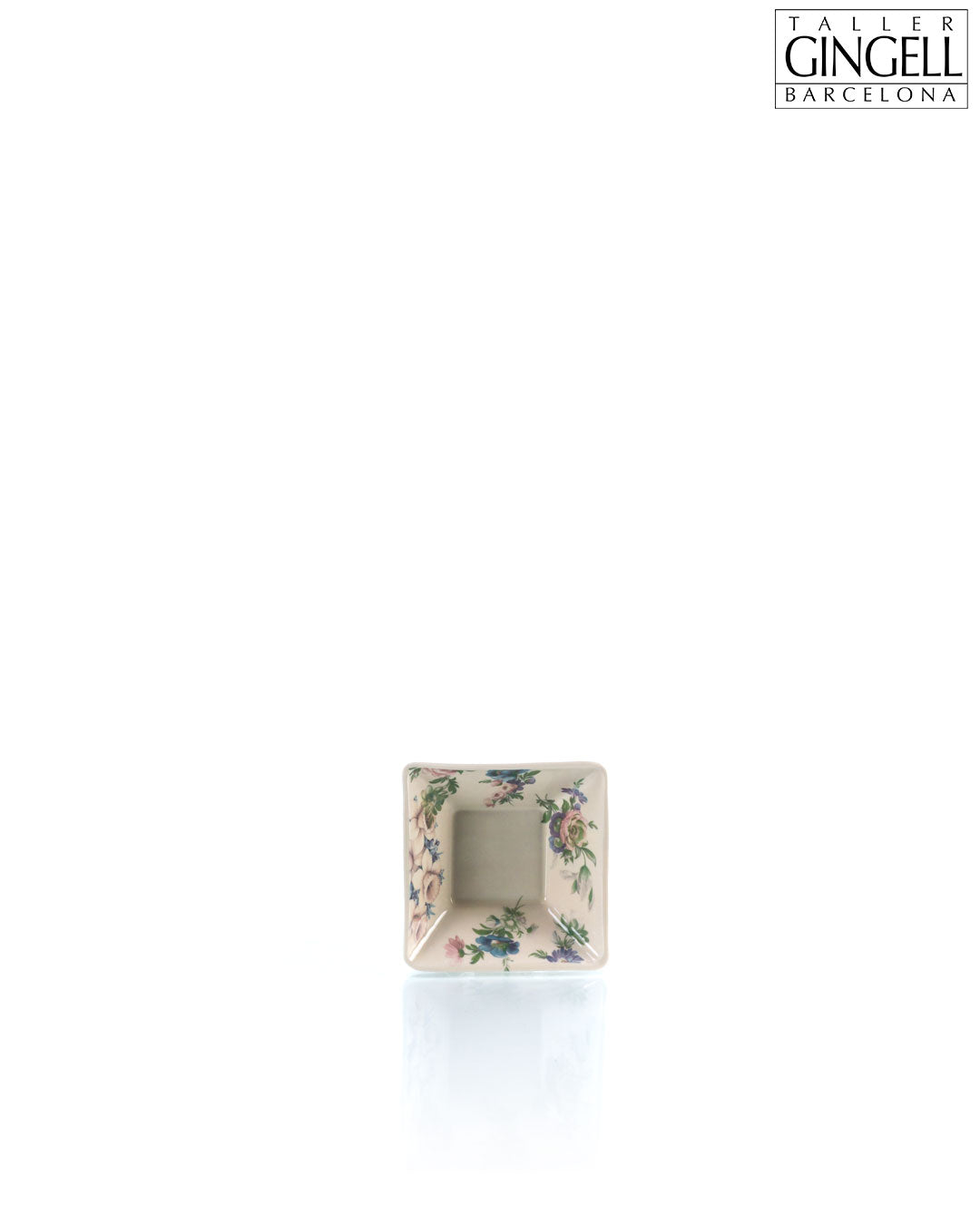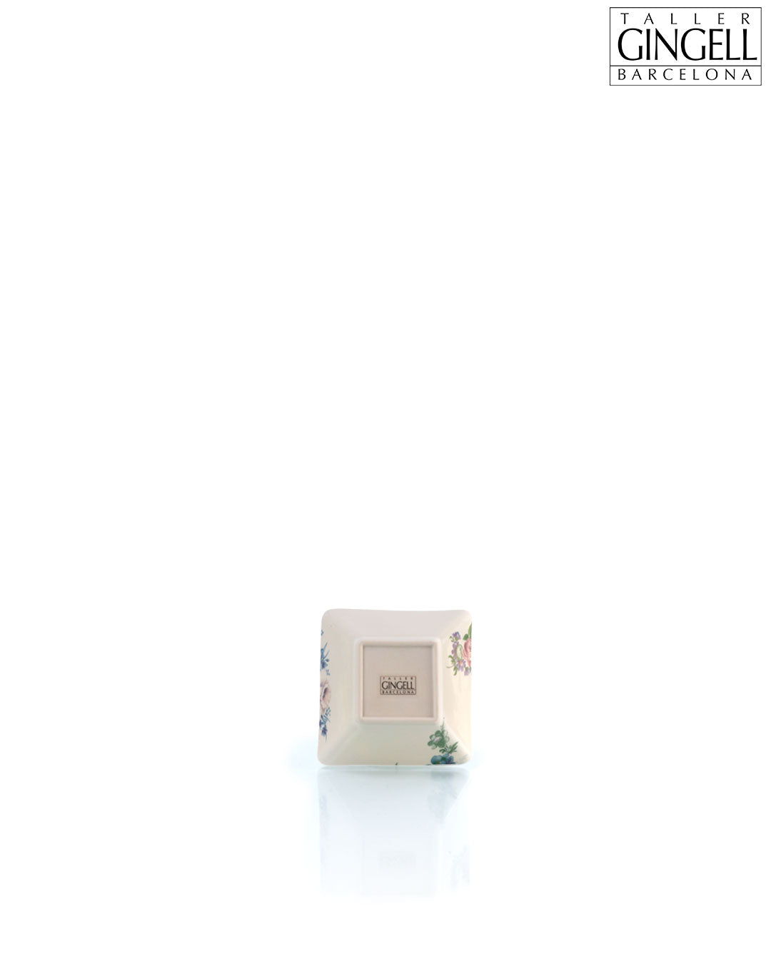 Description Petit plat carré, 9,5 cm (3 1/2") de largeur, 3 cm (1 1/4") deHauteur, en grès, fait main, oxydation cône 6 (1236ºC), glaçure jonquille. |