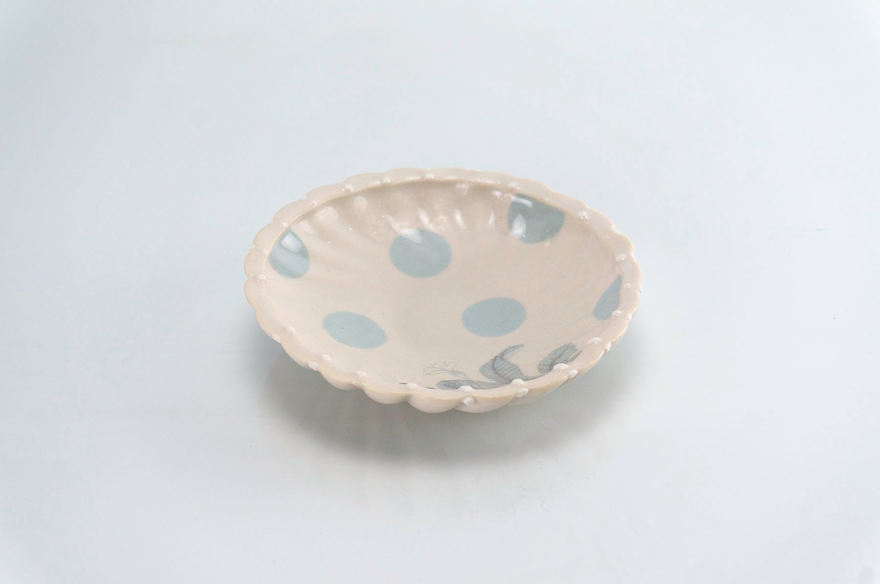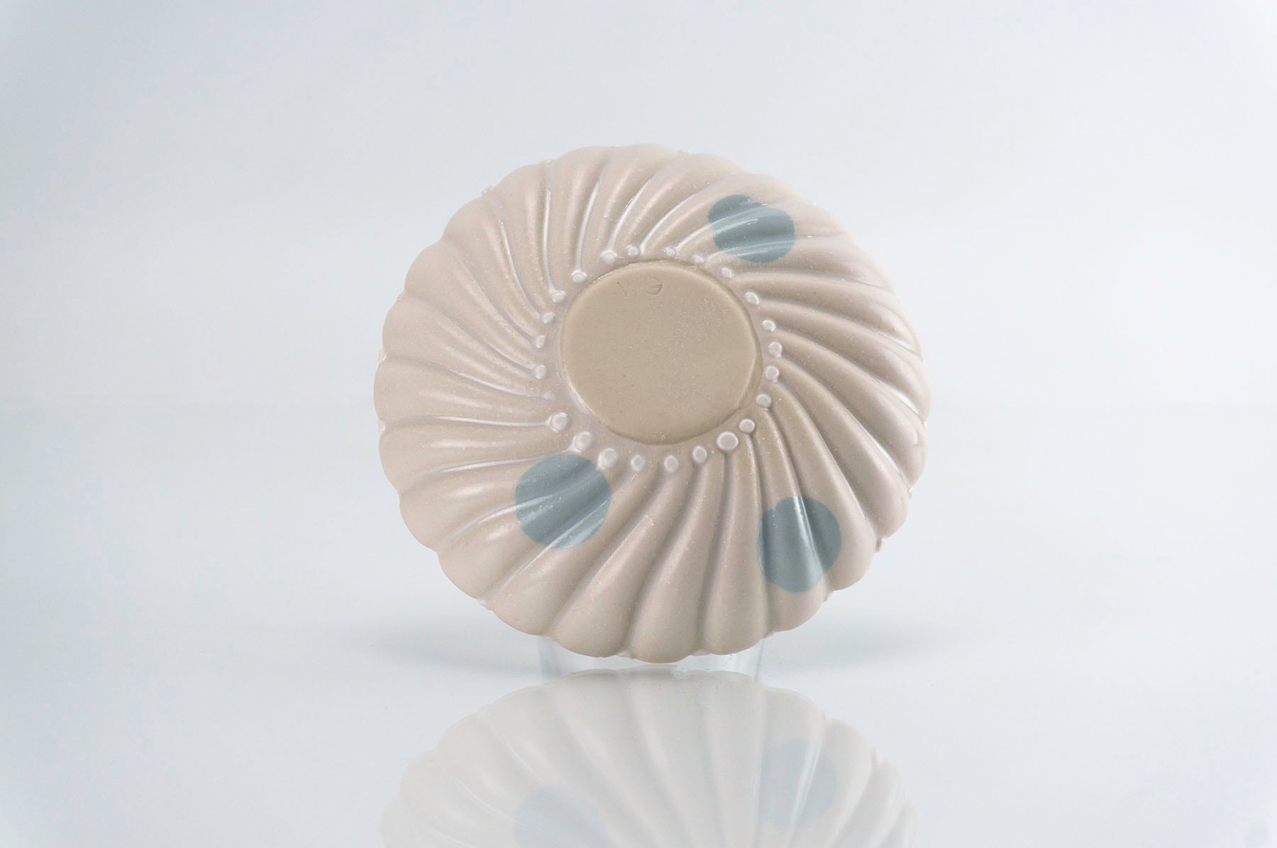 Description Small round dish, 9,5 cm (3 1/2") in diameter, 2 cm (3/4") in height, stoneware, handmade, cone 6 oxidation (1236ºC), white glaze.