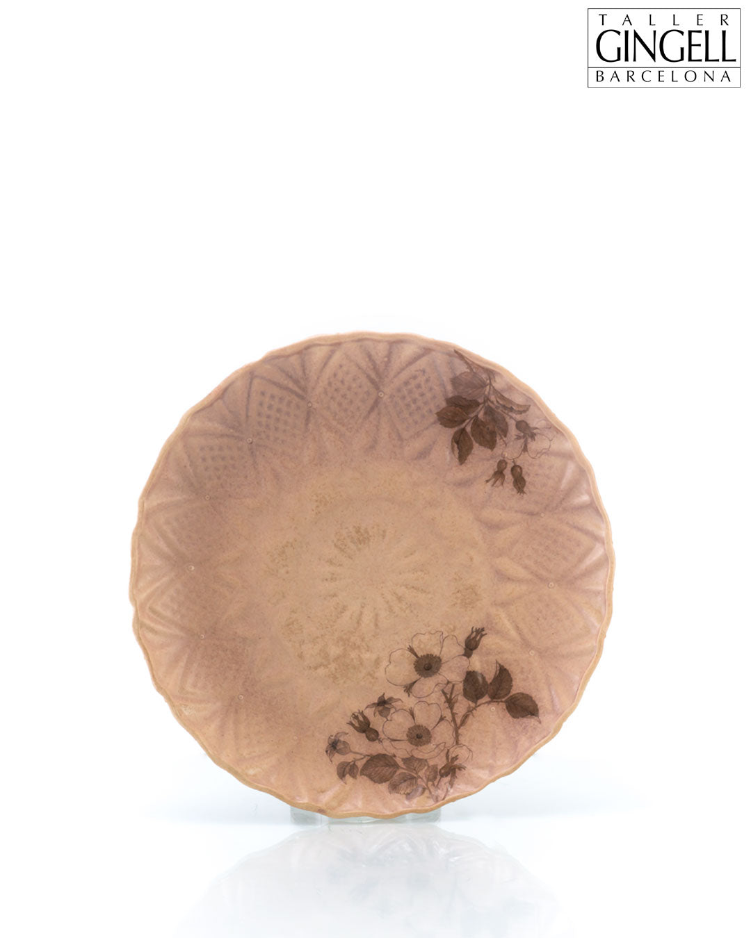 Description Large modern dinner plate 24,5 cm (9 5/8") in diameter, 2 cm (5/8") in height, white stoneware, hand-built, cone 6 oxidation (1236ºC), brown glaze, 342 grams. |