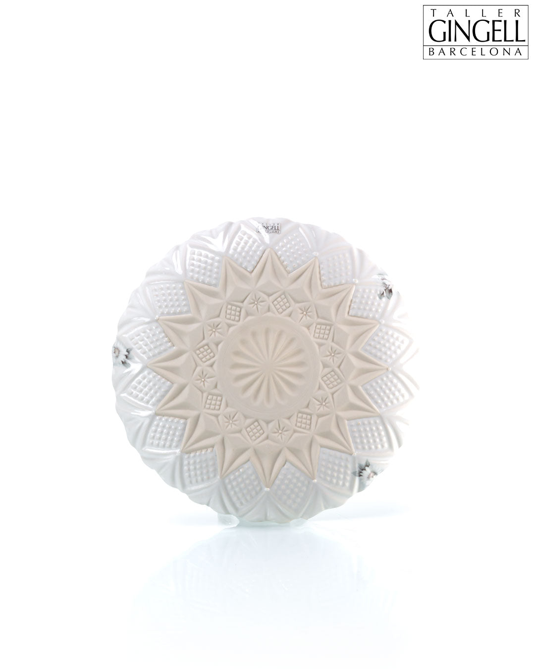 Description Large modern dinner plate 24,5 cm (9 5/8") in diameter, 2 cm (5/8") in height, white stoneware, hand-built, cone 6 oxidation (1236ºC), white glaze, 354 grams. |